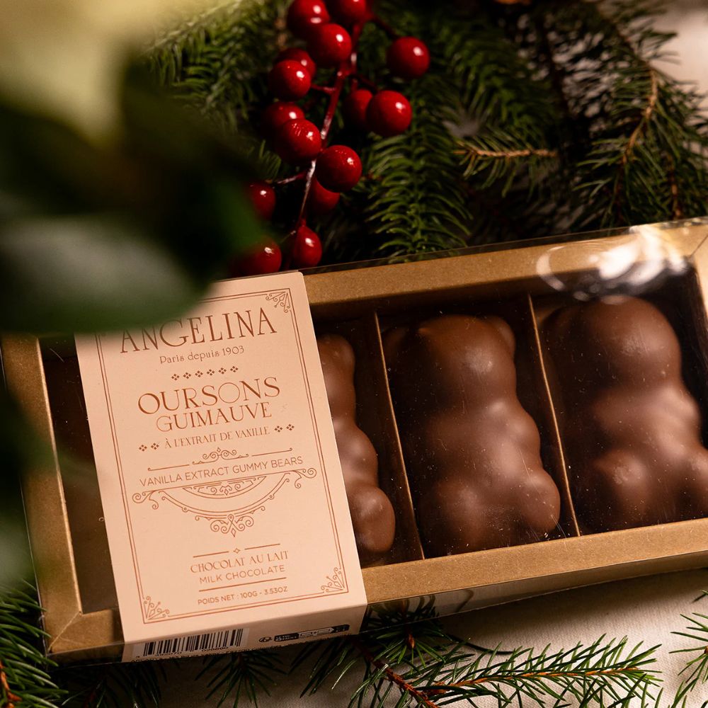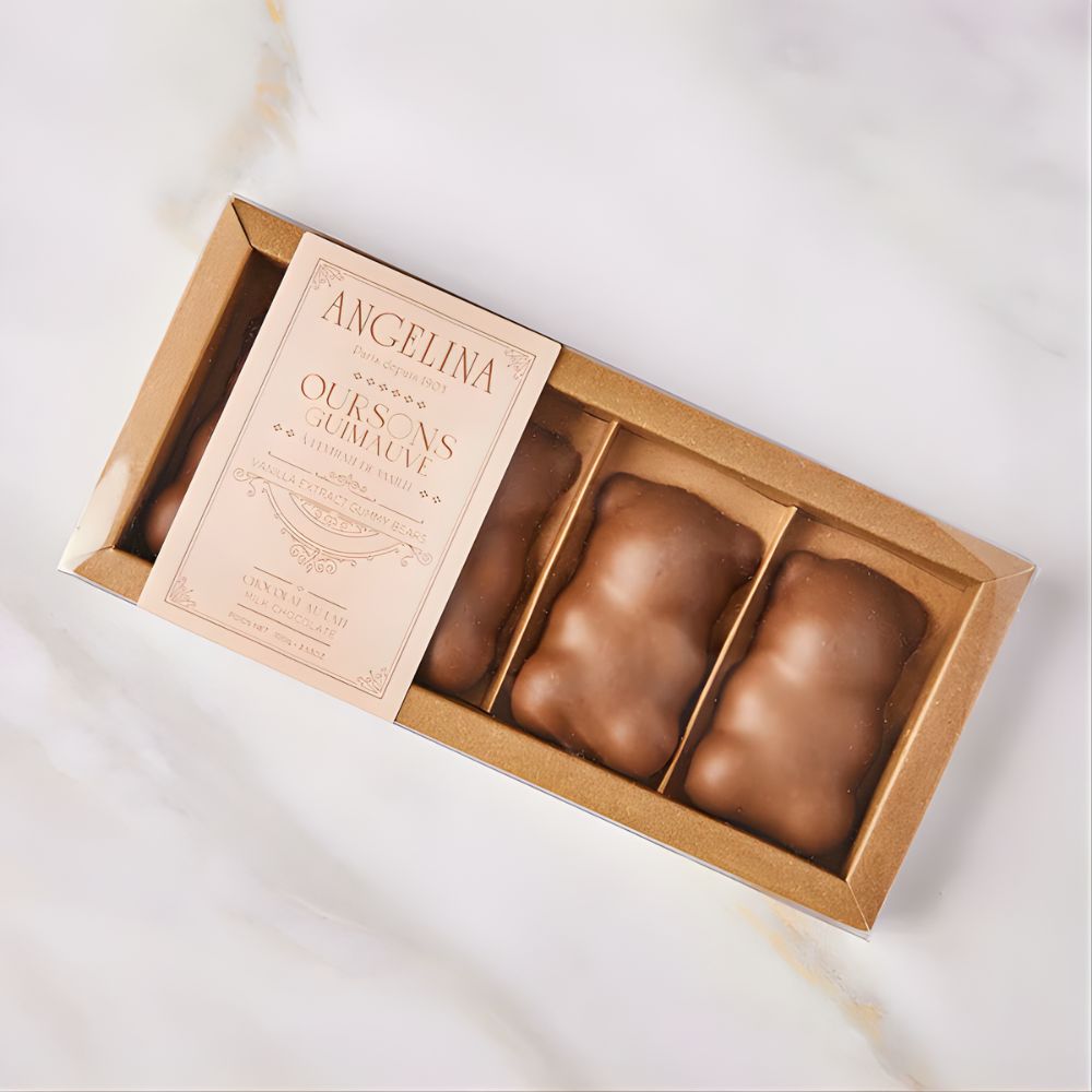 Retombez en enfance avec ces délicieux oursons guimauve à la vanille, signés Angelina Paris, maison emblématique fondée en 1903.