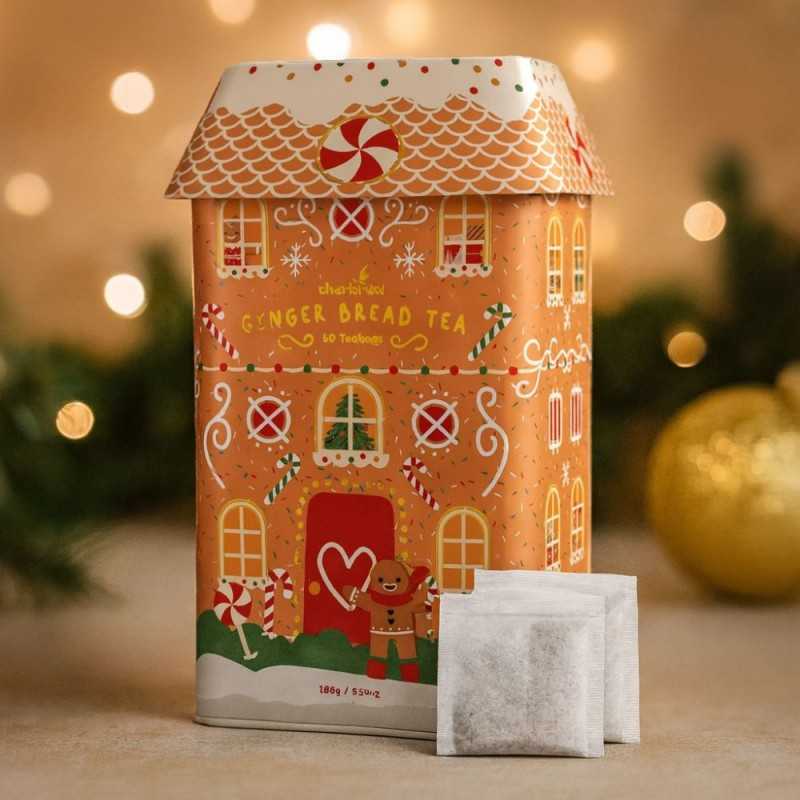 Vivez l’esprit chaleureux des Fêtes avec notre grande boîte à thé Maison Pain d’Épices, remplie de 80 sachets du mélange emblématique Gingerbread Tea.